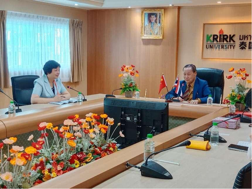 在国际合作签约仪式暨座谈会上,李定珍与泰国格乐大学校长杨金泉(Krasae Chanawongse)亲切会谈,共商“职教出海”,探讨合作培养批懂汉语、通文化、精技能的“一带一路”建设者、中泰友谊的传播者,并签署国际教育交流战略合作协议。