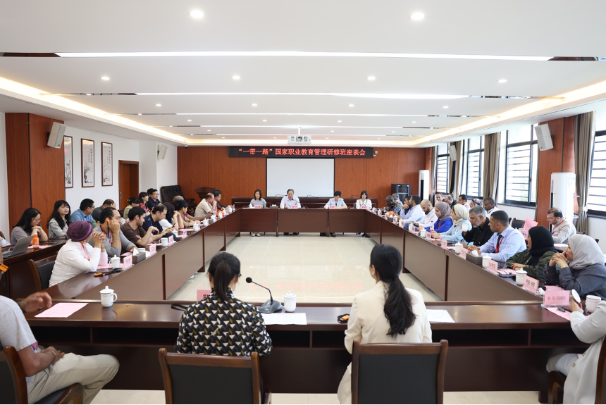 座谈会上,周忠新向研修班学员介绍了学院办学历史、办学特色及办学成果,并表示希望通过此次与“一带一路”国家专家们的交流,深入了解“一带一路”国家的文化背景及职业教育发展需求,加强国际文化交流与教育合作,为职业教育的发展注入新的活力与机遇。