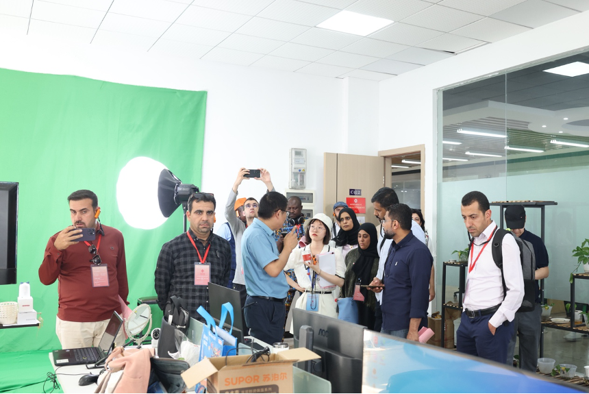 随后,一行人来到茶学院实训基地,品茶香,赏茶艺。茶学院院长谢虎军向学员一一介绍了湘茶的历史文化和茶文化基础知识。在湘商创业园,双创学院院长吴庆松当起了讲解员,带领学员实地了解创业园的基本情况及大学生创业项目运营情况、未来的发展规划等,工作室的直播场景、精美的工艺摆件引得学员们纷纷拍照合影。