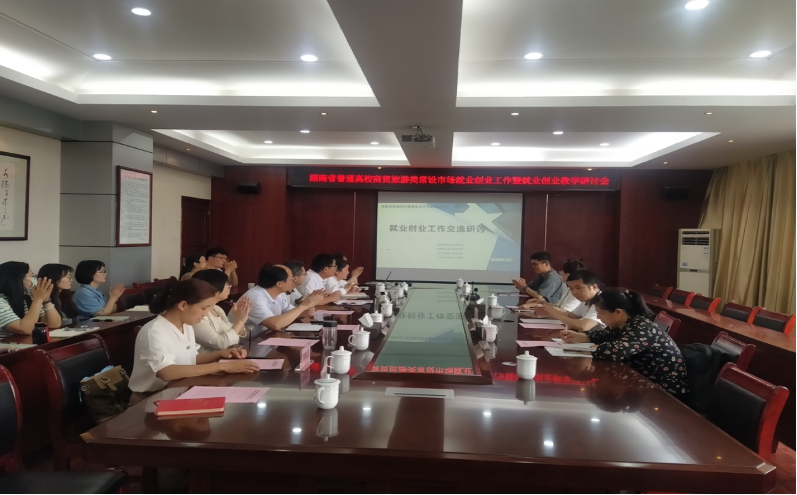 5月17日,湖南省普通高校商贸旅游类常设市场就业创业工作暨就业创业教学研讨会在湖南商务职业技术学院召开,邀请了湖南安全职业技术学院、长沙环保职业技术学院、长沙航空职业技术学院以及北京理工大学出版社代表,共同探讨高校就业创业工作以及就业创业教学的新思路、新方法,推动毕业生高质量就业。