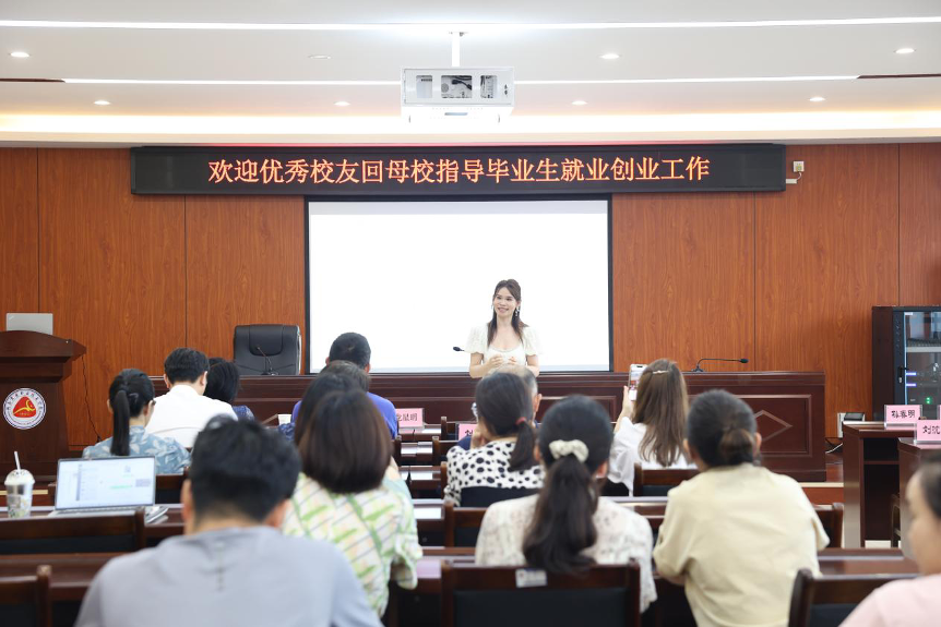 老师如何帮助学生快速找到喜欢的工作?会议邀请了96届商务秘书专业校友、深圳市库莱特光电科技有限公司创始人兼董事长龙星玥来到现场,以企业家视角给老师们分享企业对于人才的需求。由龙星玥成立的深圳市库莱特光电科技有限公司如今已成为国内领先的集研发、生产、销售于一体的高品质柔性LED灯带制造商,产品远销欧美、东南亚、中东为主的60多个国家和地区。龙星玥指出,对于应届毕业生,热爱、自信、感恩和富有同理心是企业最为看重的品质,毕业生在提高自身就业能力的同时,应该尽量对标用人单位的选才标准,提升“对口”程度。