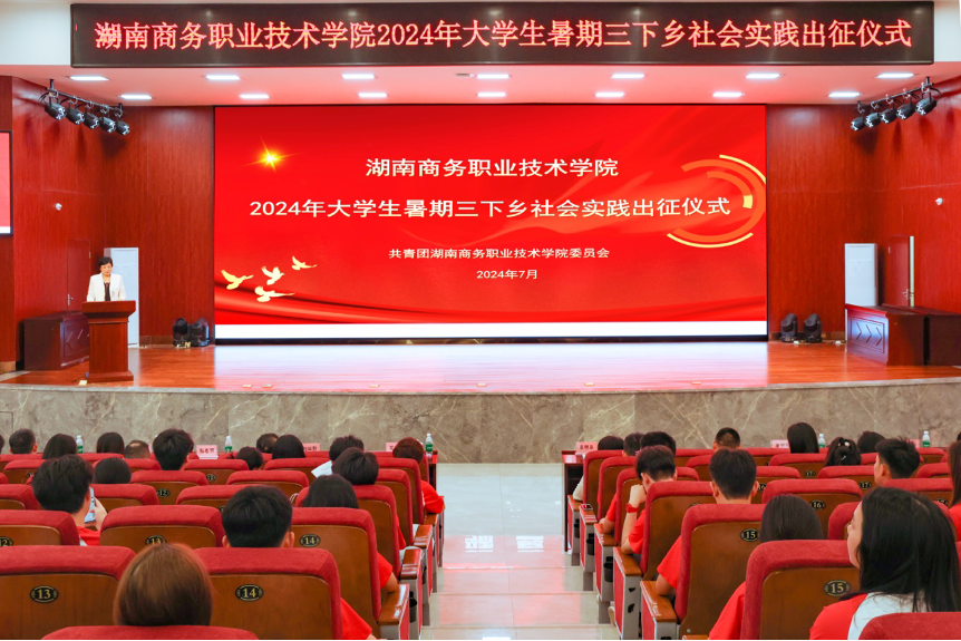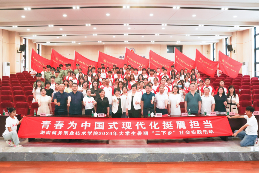 7月2日,湖南商务职业技术学院举行2024年大学生暑期“三下乡”社会实践活动出征仪式,9个实践项目、12支团队、100多名师生将从校园出发,奔赴湖南溆浦、隆回等地,开展“三下乡”志愿服务。