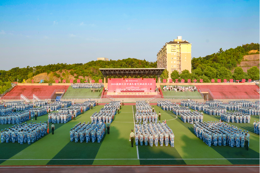 9月9日上午,湖南商务职业技术学院举行2024级新生开学典礼暨军训动员大会,3800余名新“商职人”身着迷彩服齐聚绿茵场,心怀赤诚理想,共赴青春征途。