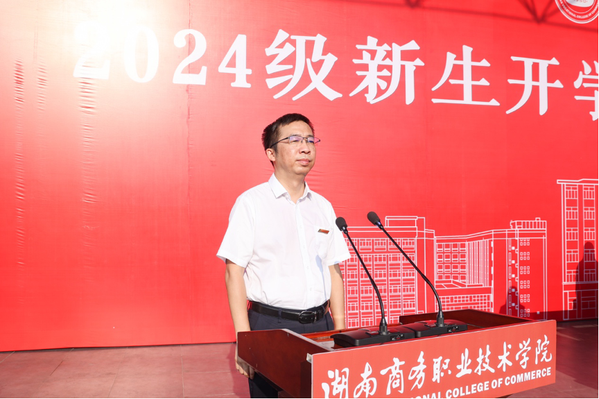 李定珍代表学院向2024级新生表示热烈欢迎。她指出,商务职院是一所历史悠久、底蕴深厚的学校,它诞生于新中国初生的曙光之中,与国家同呼吸、共命运,于民族复兴的壮阔征程上茁壮成长,见证了时代的风云变幻,铸就了不朽的辉煌篇章。李定珍勉励商职学子瞭望星空,立鸿鹄志,把准人生航向,无论顺境还是逆境,都不坠青云之志;脚踏实地,有勇有为,精研镂冰之技,以鹰隼之眼洞察世事,以赤子之心拥抱社会,以行动铸就责任之碑,担当之塔;厚德载物,器量宽宏,涵养人生格局,以崇高之品德为舵,宽广之胸怀为帆,驶向波澜壮阔、气吞万里的人生航线,铸就非凡人生格局。