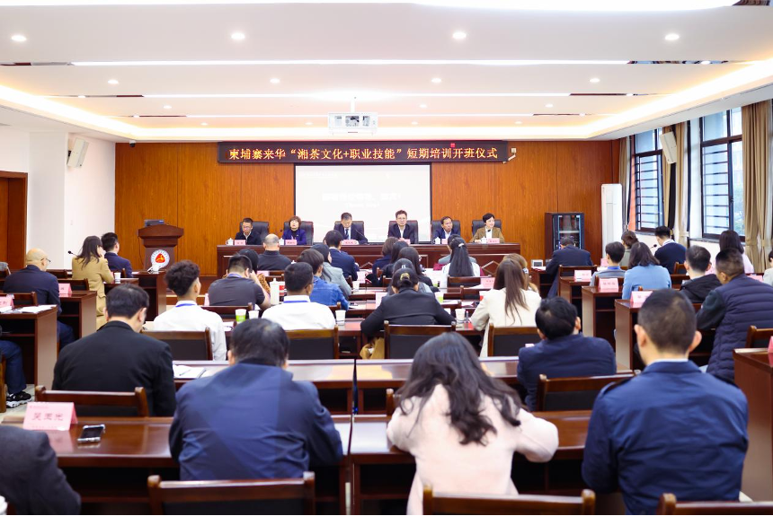 此次培训由湖南商务职业技术学院、湖南省茶业集团、湖南省茶业协会联合承办。湖南商务职业技术学院党委书记潘军致欢迎辞,院长李定珍主持开班式。柬埔寨波雷列国立农业大学师生代表、柬埔寨健康农业有限公司总经理及员工代表,湖南茶业集团股份有限公司总经理助理袁勇,湖南商务职业技术学院副院长易兰华及中层以上干部参加开班仪式。