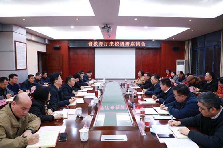 在随后召开的座谈会上,夏智伦听取了湖南商务职业技术学院办学情况汇报,用“发展将越来越快、越来越好”畅谈了调研感受,充分肯定了学院近年来的办学成就。夏智伦指出,当前,为贯彻落实党的二十届三中全会对教育综合改革作出的重要部署,省委省政府将“构建高等院校及其学科设置调整优化机制”列为我省第一批重点推进的12项改革事项之一。未来如何优化学科专业布局,更好服务湖南“三高四新”美好蓝图,是我省高校面临的新形势、新挑战、新机遇。学院领导班子要有全局视野和长远眼光,牢牢把握国家和我省深化教育改革的谋篇布局,坚持把办学目标同国家职业教育发展的战略任务、湖南经济社会发展大局、高等教育未来发展方向紧密联系在一起,全力以赴将学校办出特色、办出水平、办出影响。要以改革创新为动力,以学科专业优化调整为契机,着力破解专业同质化难题,将资源集中到对接产业紧密、优势特色鲜明的学科专业上来,逐步构建布局合理、产教融合深、支撑力强的职业教育专业体系,提升关键办学能力,大力培养适应新质生产力发展的高素质人才,不断提高高等职业教育对经济社会高质量发展的贡献度。
