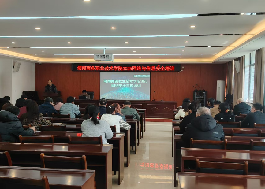 为进一步提升教职员工的网络与信息安全意识,增强应对网络安全威胁的能力,3月18日,学院举行2025网络与信息安全培训,邀请中国信息安全测评中心华中测评中心技术总工王作为老师进校开展专题讲座,为教职员工带来了一场关于网络安全的深度解析与前瞻性研判。党委委员聂振华出席会议并讲话,会议由实训与信息管理中心主任毛政珍主持。