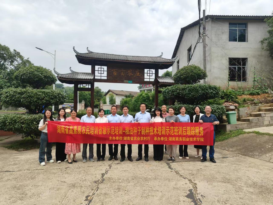 为检验高素质农民培训成果,助力农村经济、种业高质量发展,2025年5月7日至8日,由湖南商务职业技术学院党委委员、副院长姜华斌、继续教育学院院长张庆带队,组织特邀专家团队及培训工作组赴望城、宁乡、益阳、永顺、常德、南县、沅江等地,对2024年湖南省高素质农民培训省级示范培训-种子产业发展带头人专题培训班(农业经理人)及粮油种子制种技术培训示范班学员开展训后跟踪回访服务。此次回访聚焦学员回乡后生产经营转化成效,通过实地调研与技术指导,助力乡村经济与种业高质量发展。