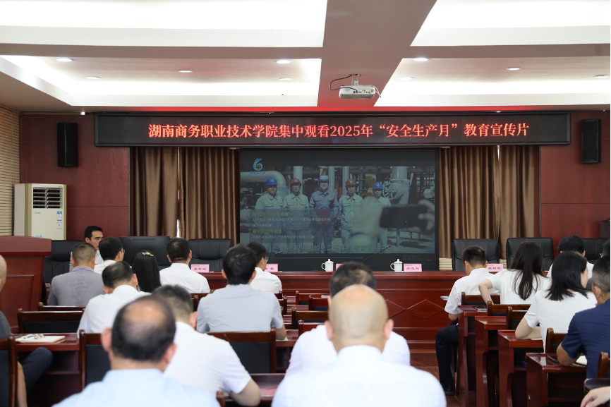 为深入贯彻落实习近平总书记关于安全生产的重要指示精神,扎实推进安全生产治本攻坚三年行动,6月17日,全体校领导及各部门负责人集中观看了2025年"安全生产月"主题宣传片,持续推进以"人人讲安全、个个会应急——查找身边安全隐患"为主题的第24个全国"安全生产月"系列活动。
