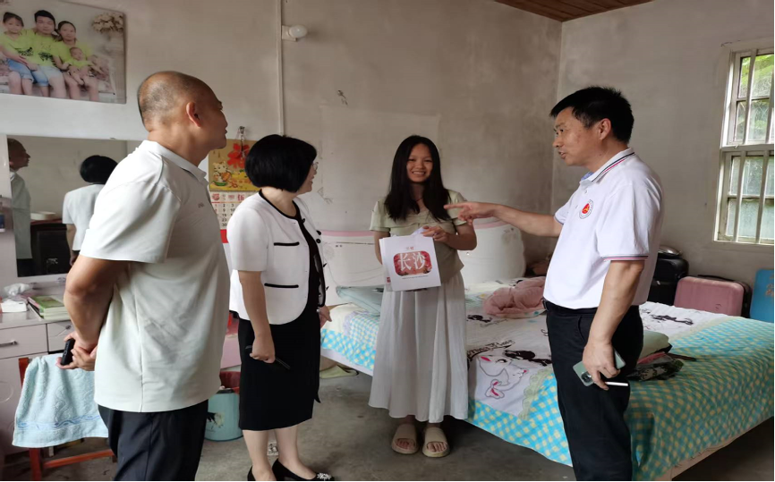 调研期间,禹明华一行深入走访9组脱贫户唐仲贵和16组阳大红家庭,亲切询问他们的生活状况。了解到唐仲贵的三个孙女分别就读小学和初中、阳大红的孙女正读高一后,禹明华代表学院为孩子们送上学习用品,勉励她们勤奋学习,用知识改变命运。