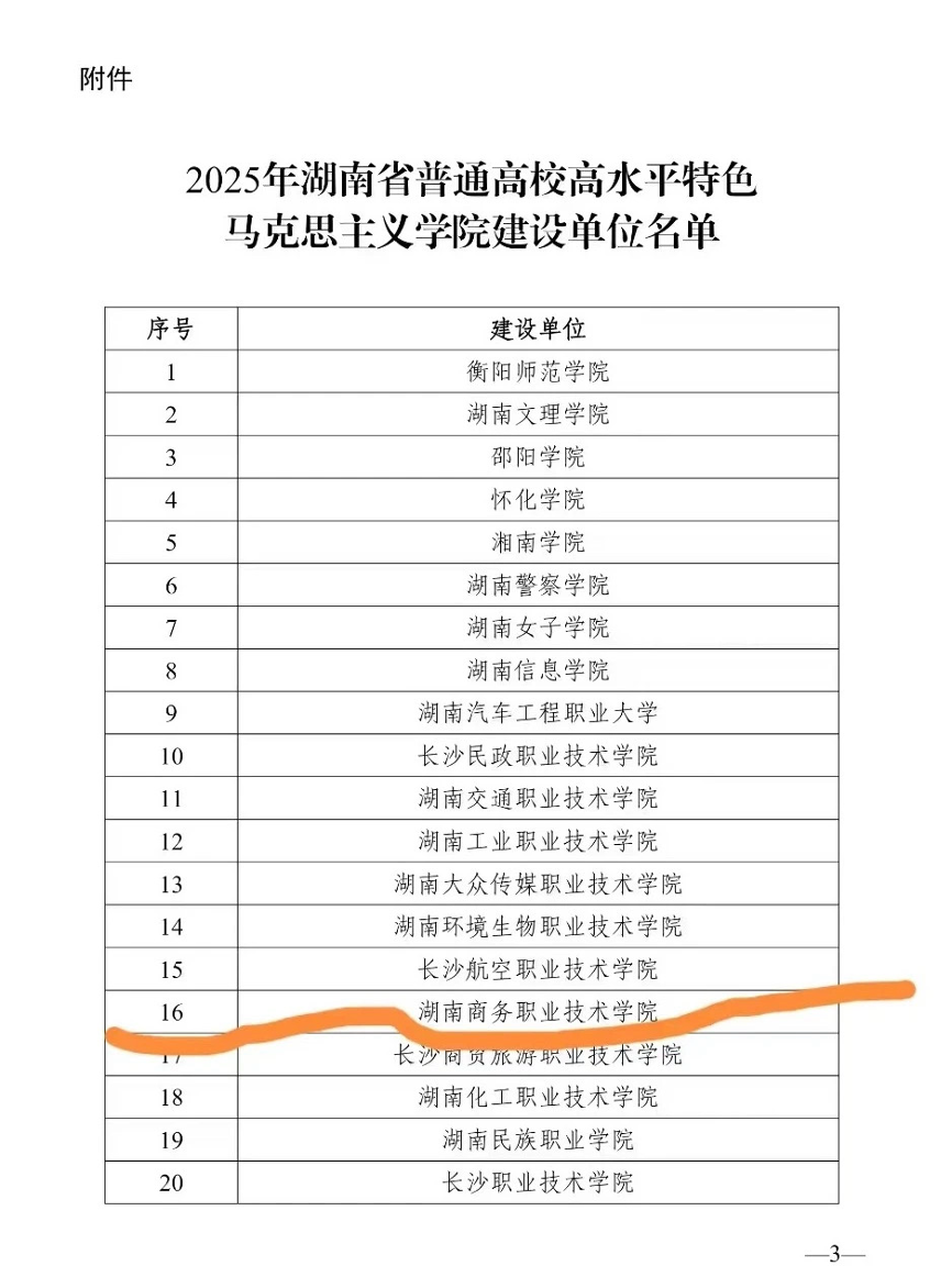 近日,湖南省教育厅公布2025年全省普通高校高水平特色马克思主义学院建设单位名单,湖南商务职业技术学院成功入选。作为全国职业院校乡村振兴协作联盟发起单位,该校秉承“强商惠农”办学理念,始终立足职业教育类型特征与学校商科特色,创新构建了“五红四色”思政育人“商职”模式。这一模式以湖湘红色文化为根基,聚焦培养“守正道、懂商道、助兴农”的新时代商科人才,实现了思政教育与专业实践的深度融合。