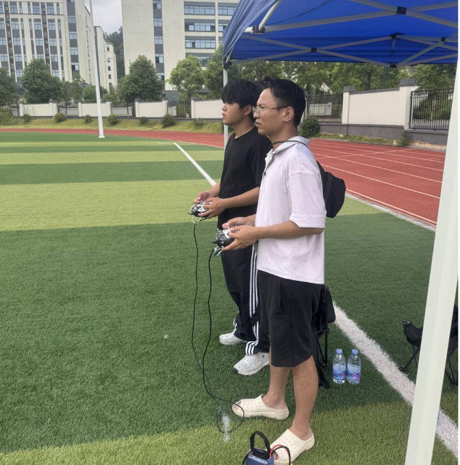 在内部师资培育方面,学院充分依托学校现有优质师资基础,启动“低空经济领域专业能力提升”计划。学校划拨专项培训经费,系统搭建“智能技术+无人机技术+行业应用”的复合能力提升路径,全面助力教师突破低空经济领域关键技能。其中,佘玲军老师凭借其在通信工程领域积累的扎实技术功底,于暑假期间全力投入超视距多旋翼驾驶员考证培训。面对高温酷暑,他坚持每天完成8小时高强度实操训练,并充分发挥自身在设备控制逻辑方面的专业优势,熟练掌握了无人机起飞、悬停、航线规划等核心技能,反复打磨操作细节,最终顺利通过中国民用航空局(CAAC)认证,取得无人机实操教学的“专业通行证”,为学院无人机多旋翼驾驶教学板块补充了既懂电子技术又精于操控的复合型师资力量。