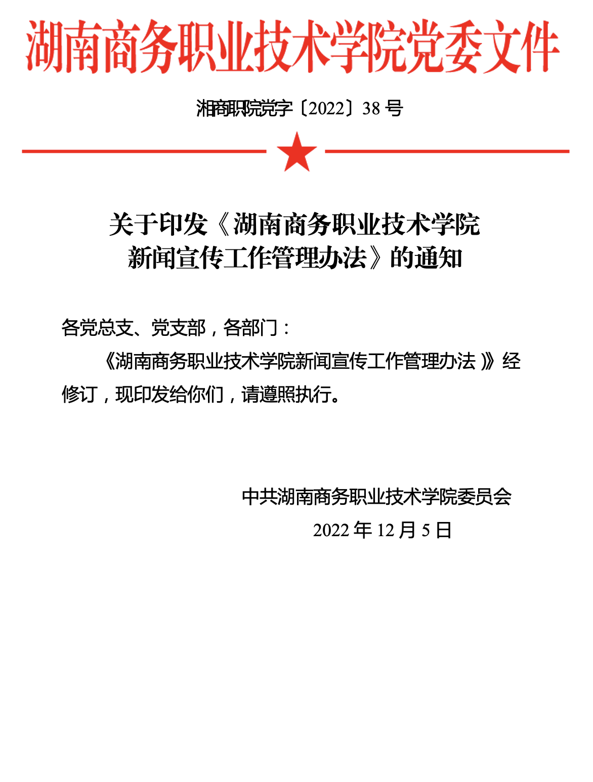 关于印发《湖南商务职业技术学院 新闻宣传工作管理办法》的通知