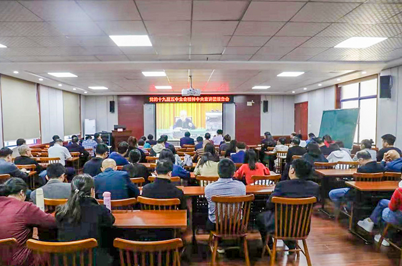 观看学习报告会后,周忠新指出,党的十九届五中全会是在“两个一百年”奋斗目标历史交汇点上召开的一次十分重要的会议。全会审议通过的《中共中央关于制定国民经济和社会发展第十四个五年规划和二〇三五远景目标的建议》,是新时代坚持和发展中国特色社会主义、开启全面建设社会主义现代化国家新征程的纲领性文件,具有十分重大的现实意义和深远的历史意义。学院各级党组织和各部门要深刻认识十九届五中全会的重大意义,认真学习领会全会精神,深刻把握全会审议通过的《建议》的丰富内涵、核心要义,切实增强“四个意识”、坚定“四个自信”、做到“两个维护”,把思想和行动高度统一到以习近平同志为核心的党中央决策部署上来,为实现中华民族伟大复兴中国梦作出更大的贡献。