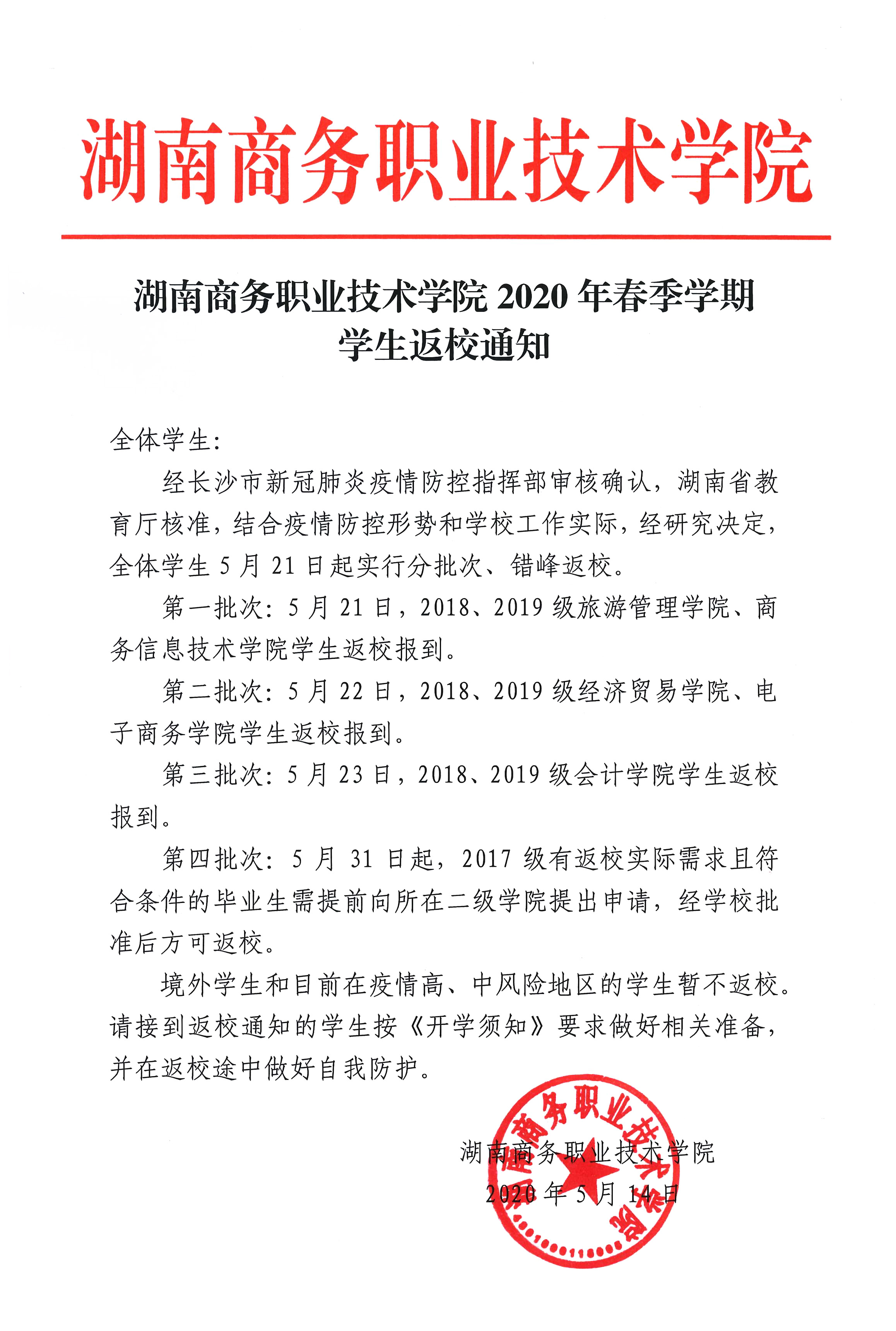 关于做好学生延迟开学有关事项的通知(湘商职学字〔2020〕2号)