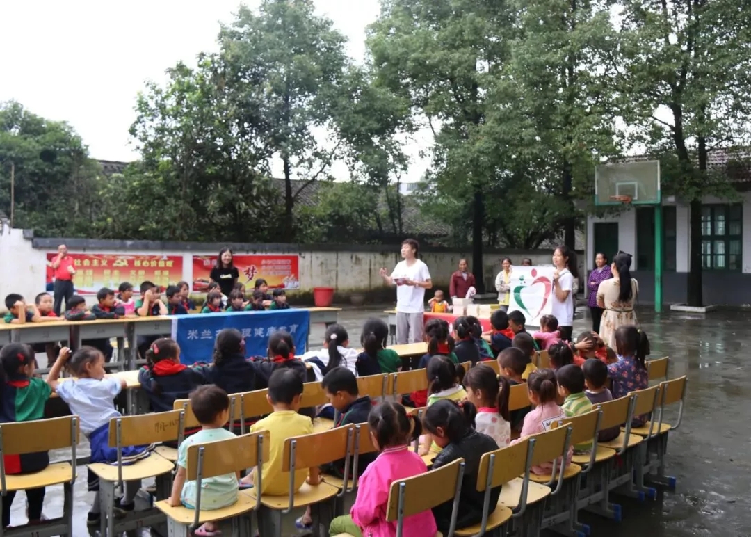生态文明实践服务团带着米兰花心理公益宣传来到了武堰小学,