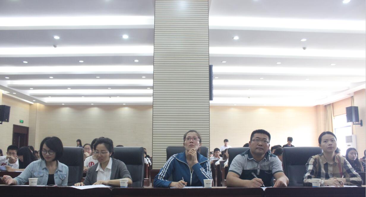 回顾时光,我们亲近中华经典,回顾时光,我们诵读精美诗篇。为传承中华文化,2017年6月6日下午14:30,我院在学术报告厅举办了学院首届中华诗词大赛。参加本次大赛的评委有学院宣传统战部吴婷、李江东老师,院团委罗佳玲老师,学工处陈慧军、谷永林老师。本次活动的主题是续读名家诗词,铭记中华精髓。比赛分为三轮,第一轮:比赛的内容为古诗词背诵,主持人念题,由参赛选手回答出古诗的上句或者下句。每支参赛队伍中的十名队员依次上场抽取题目,回答主持人提出的问题。本轮答题时间限定30秒,回答正确得十分,答错或不答及超时不得分,依次类推,没有得分的队员直接淘汰,得分者直接进入第二轮比赛。第二轮比赛内容为古诗词听写,主持人念题,参赛选手写出正确的整句诗。由剩下的队员依次上场抽取题目并听写。本轮答题时间限定一分钟,回答正确得十分,答错或不答及超时不得分,本轮只留八位选手进入第三轮比赛。