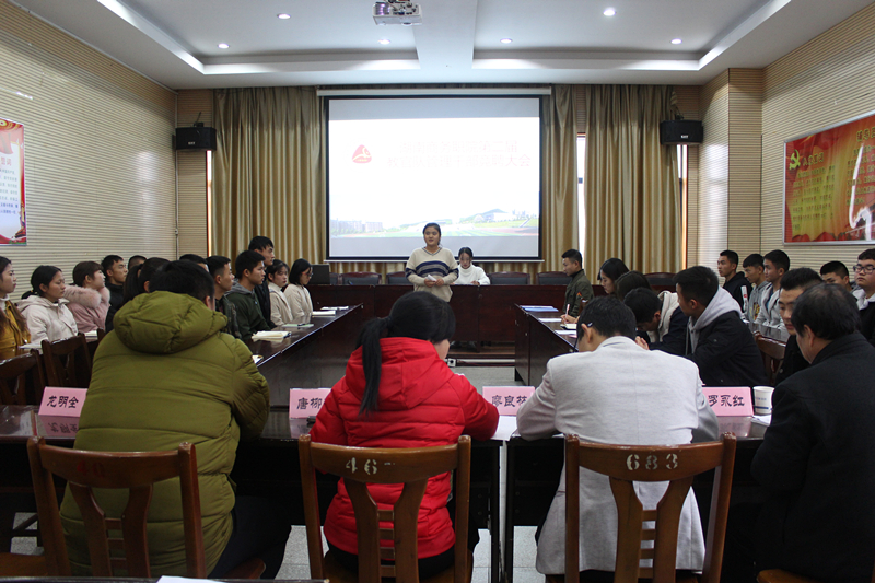 2018年12月4日下午2点,我校第二届教官队管理干部竞聘大会在办公楼第五会议室召开。出席本次会议的领导有学校廖良林副校长、武装部唐柳荷部长、武装部罗永红老师、龙明全老师以及第一届自训队管理干部。