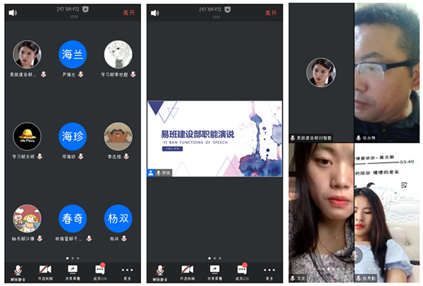 本次大赛最有看点的职能演说赛项安排在5月5日下午进行。由各部门选派1名学生干部根据抽签顺序逐一远程视频会议参加职能演说赛项考核。在该赛项中,各位学生干部都以自己为观察中心,阐述了部门主要工作和存在的不足以及具体改进思路,由学工处谷永林老师,校学生会主席团王琼、董斌、祝秀勤、王文组成的评委团一一对参与演说的学生干部现场提问。
