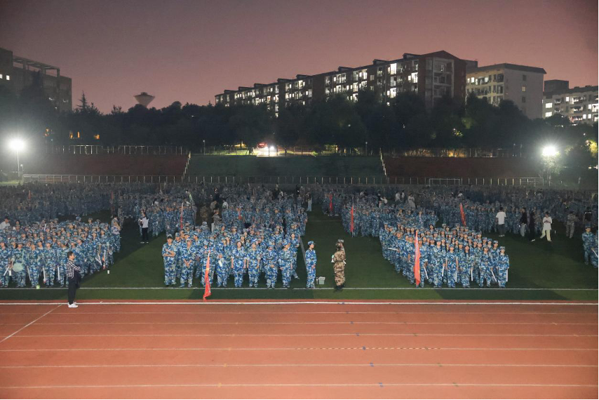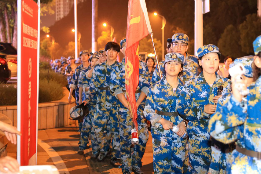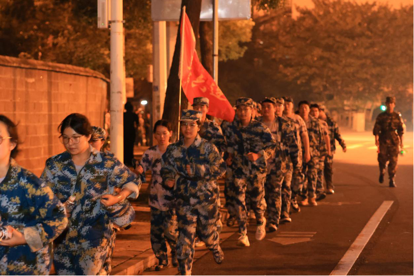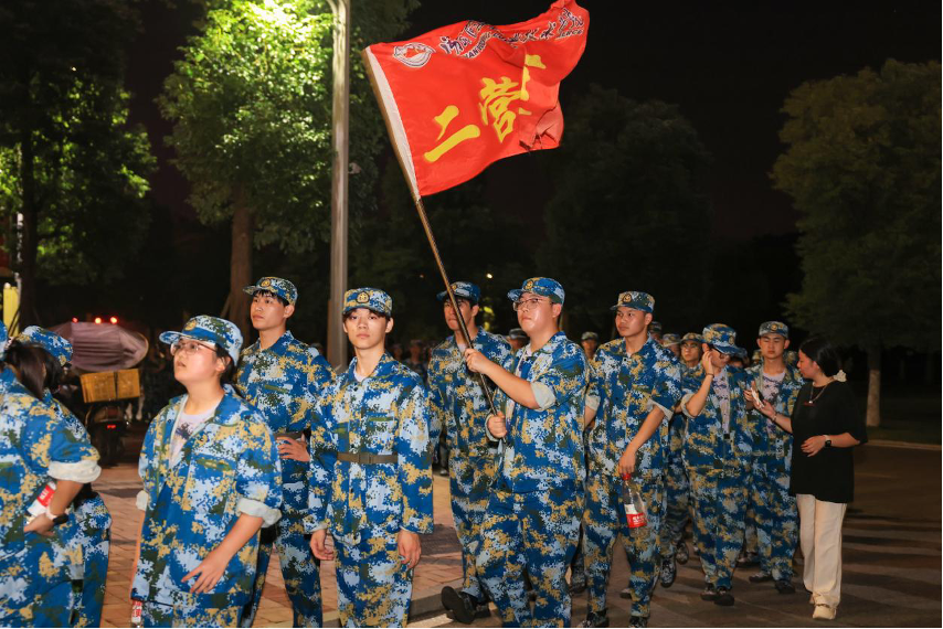 迷彩洪流踏夜前行 湖南商务职院4500名新生拉练淬炼青春