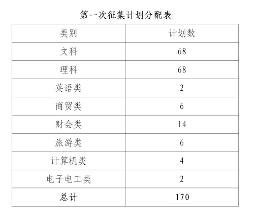 2020年我校第一次征集志愿计划