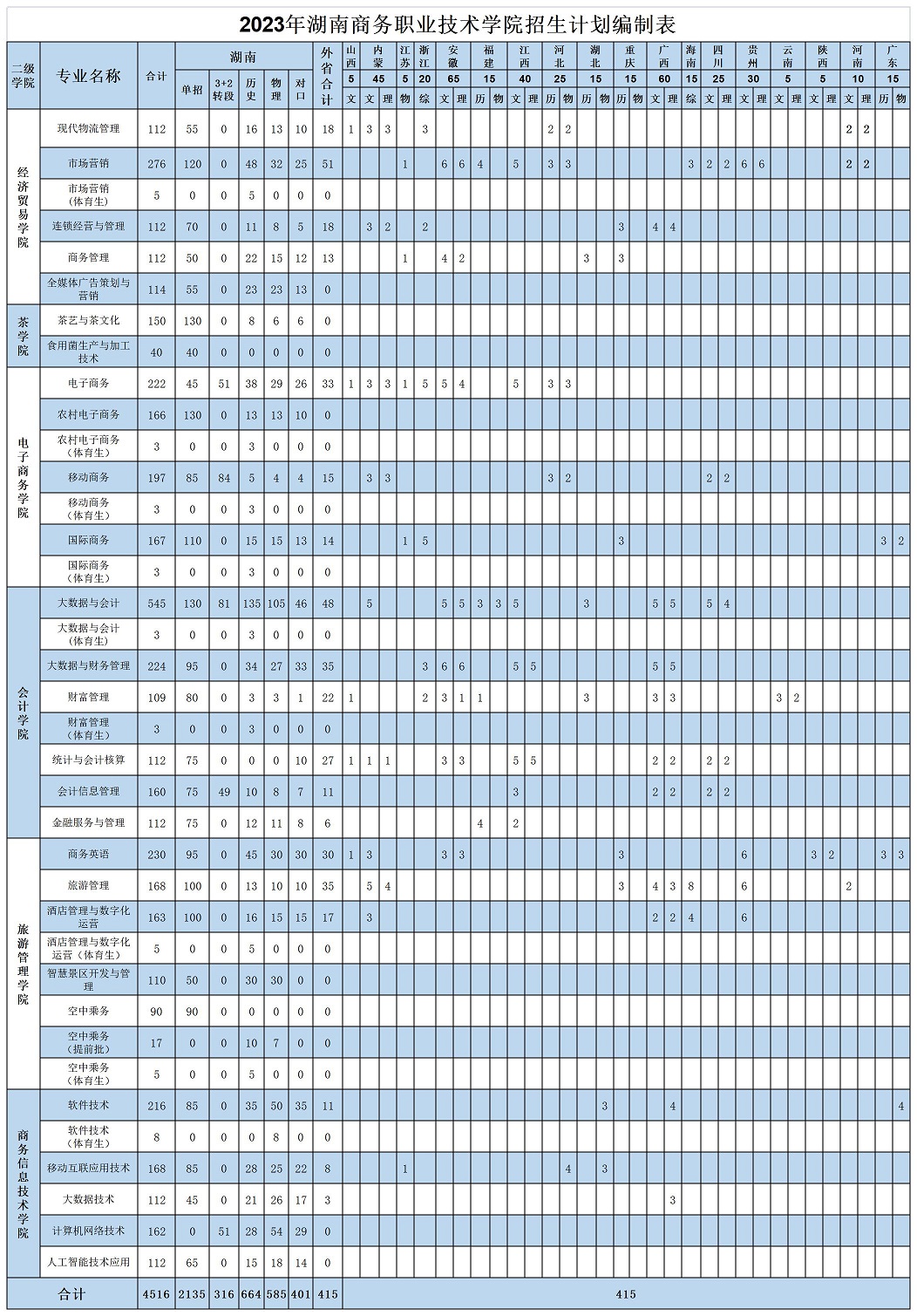 学院2023年招生计划