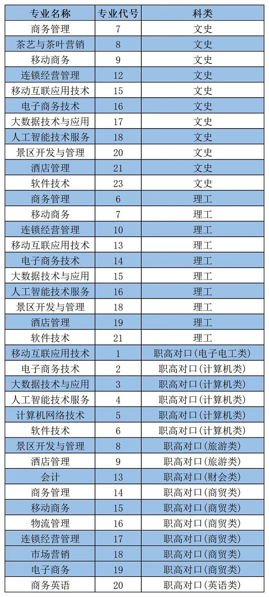 可征集专业列表及代码