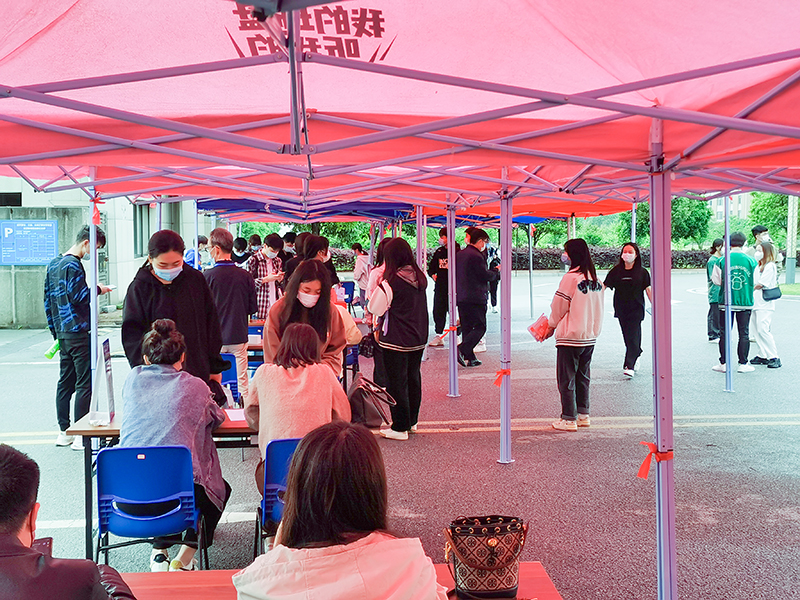 “你好,这边请出示一下健康码、行程码”“你好,这边需要检测体温,请配合一下”从早上7点开始,考生开始陆续排队进入扫码区、测温区、消毒区、登记区等,每位考生必须戴好口罩在校门口间隔一米列队等候,在核验相关证件、体温正常且经过消毒处理后方可进入学院内。校园内,每一个路口都有教师志愿者为考生答疑解惑,每一处考点外都站有教官队员维持现场秩序,为考生顺利参加单招考试暖心护航。