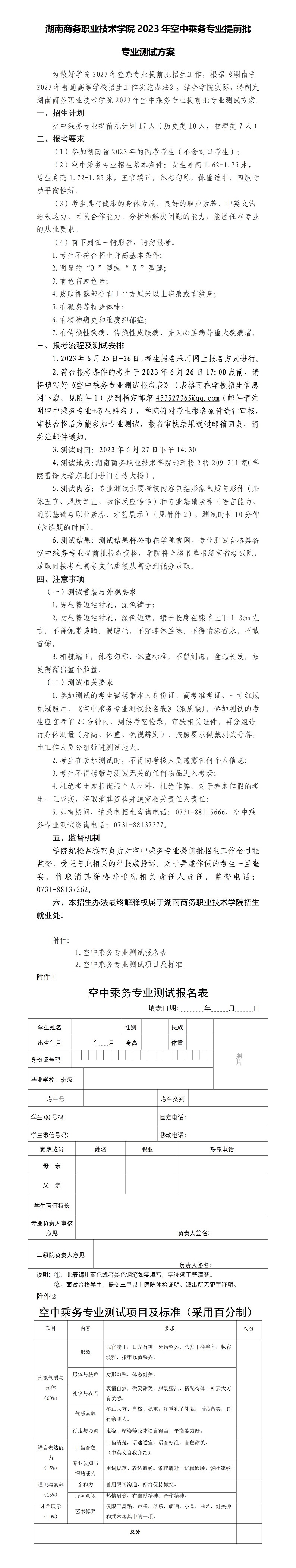空中乘务专业提前批专业测试方案