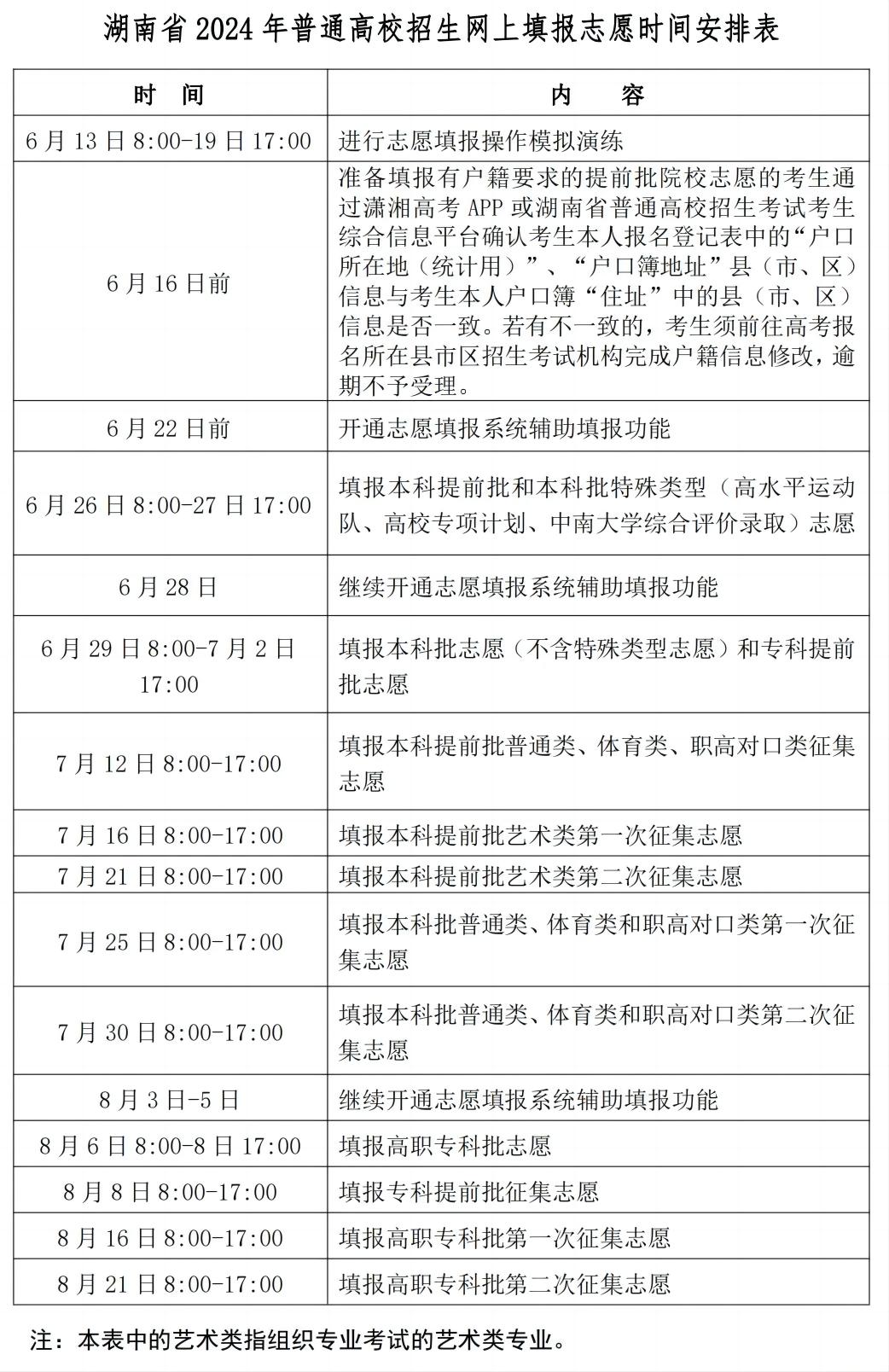 @高考生 湖南省2024年普通高校招生网上填报志愿及录取时间表公布!