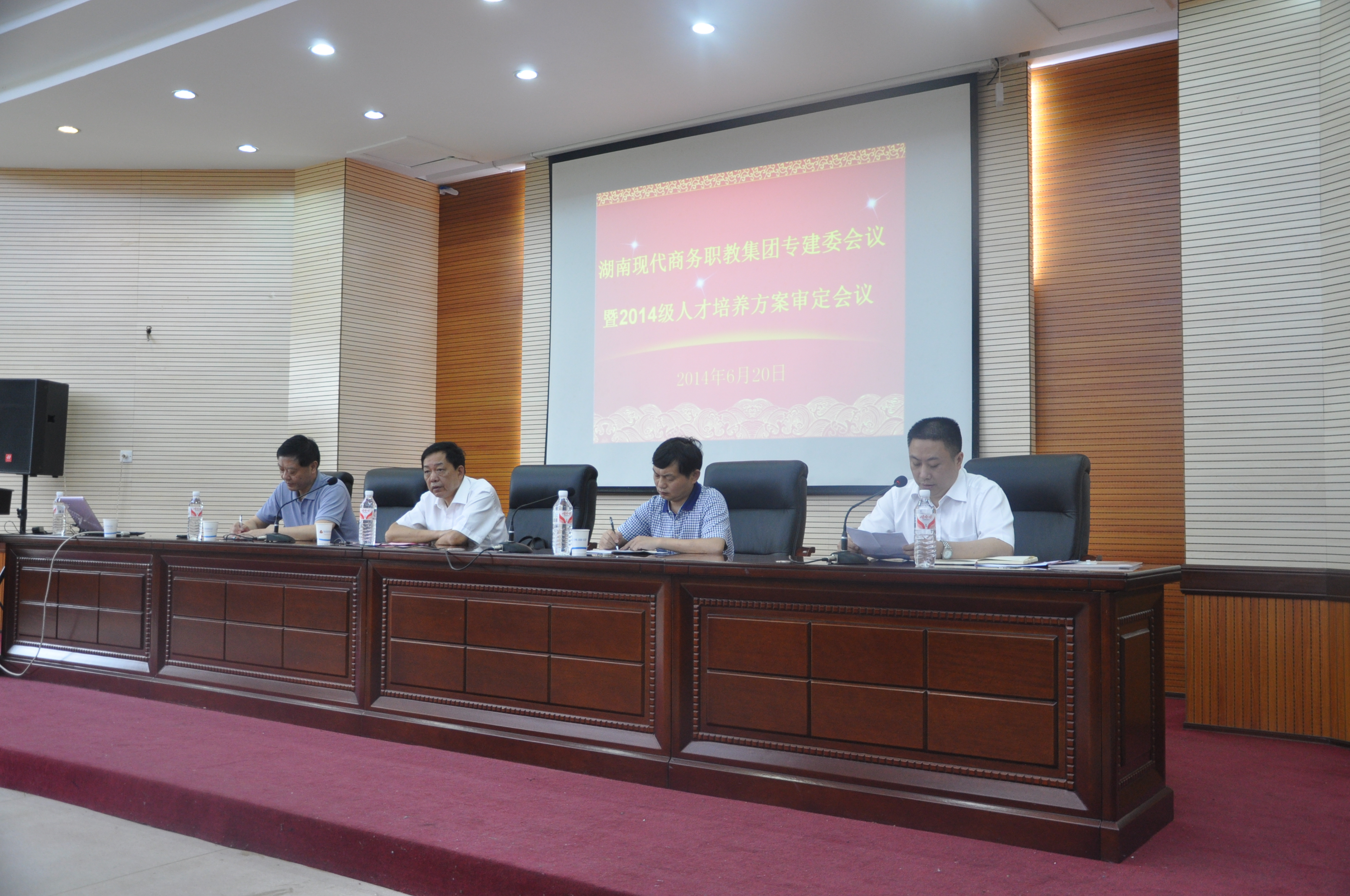 6月20日上午,湖南商务职教集团专业建设指导委员会暨2014级人才培养方案审定会议在学院办公楼一楼学术报告厅召开。省教育厅职成处副处长朱日红、学院院长孔军山、湘贵酒业集团董事长王静、湖南商务职教集团市场营销类等九个专建委全体成员出席会议,学院相关院领导、各系部负责人、教研室主任、专业带头人及骨干教师参加会议。会议由学院院长助理伍建桥主持。