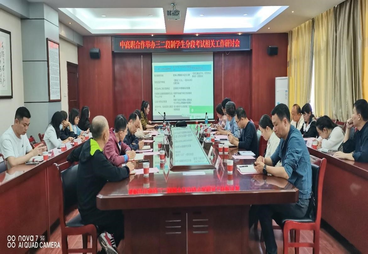 随后,学院教务处处长毛政珍对三所合作中职严格执行合作专业人才培养方案的做法表示高度认可与赞许,并主持与会人员对《中高职合作举办三二段制学生转段考试方案(征求意见稿)》进行了研讨。大家还围绕转段考试方案中的学生资格审查、三二段制学生是否可以参加高考报名以及转段考试时间、方式、录取等内容开展了讨论。