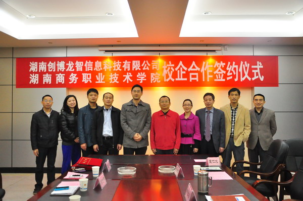 最后,湖南创博龙智信息科技有限公司副总裁王守选与我院林国安副院长分别代表双方签署了校企合作协议,并合影留念。
