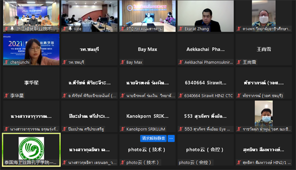 泰国东部职教集团9所院校参训师生代表以及学校国际交流与合作中心、信息技术学院、国际贸学院教师代表近百人参加会议。