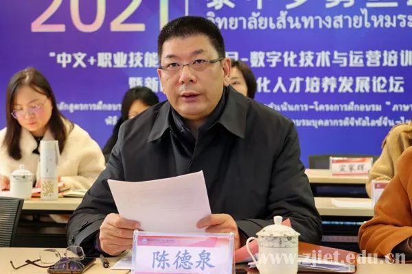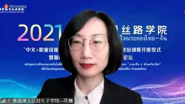 陈巍在致辞中也指出,电子商务是中泰两国重点合作领域,“中文+职业技能”培训项目符合泰国社会发展需要。在这样的背景下,学校与泰国东部职教集团合力在数字化技术与运营领域,培养“中文+专业”技能人才,对于中泰两国共建美好城市、共创美好生活,促进两国民心相通具有重要意义。她表示,海上丝路孔子学院将持续发挥桥梁作用,为泰中两国“中文+职业技能”人才培养做出积极贡献。