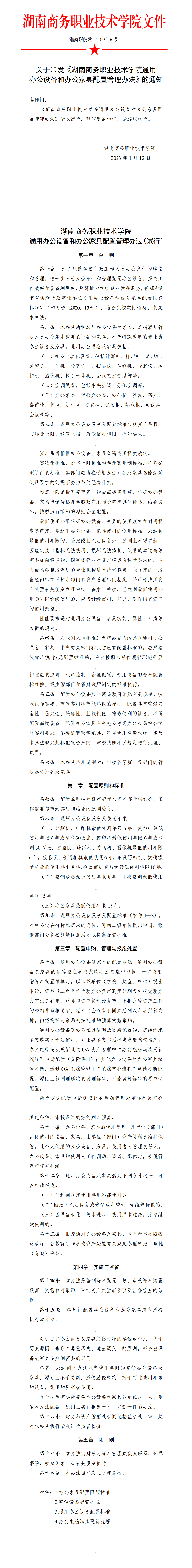 关于印发《湖南商务职业技术学院通用办公设备和办公家具配置管理办法》的通知