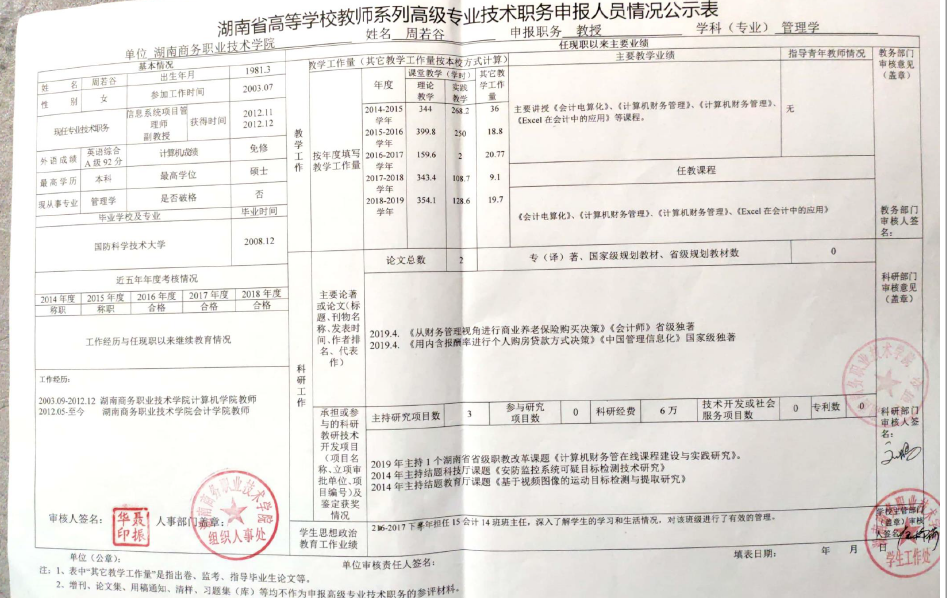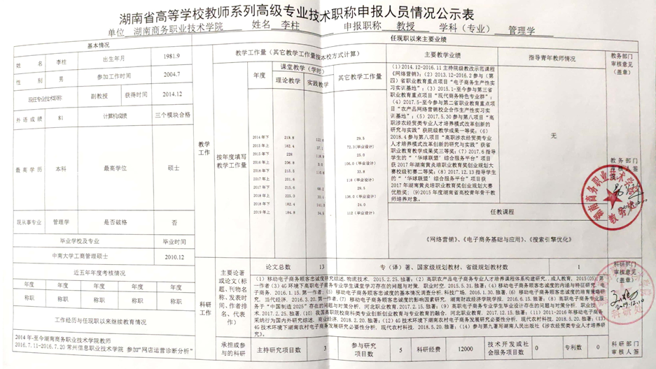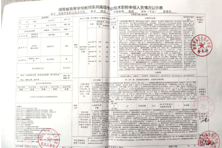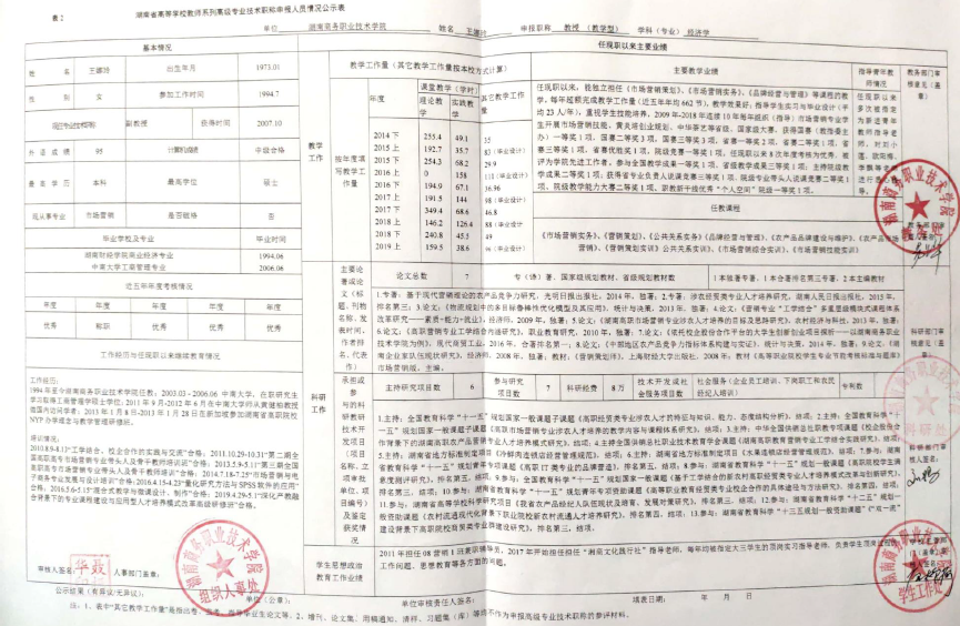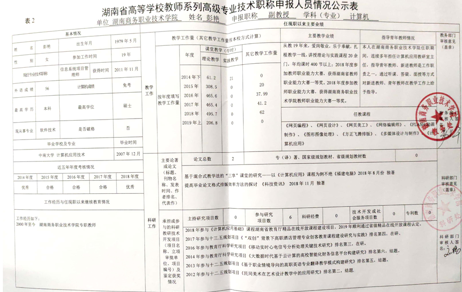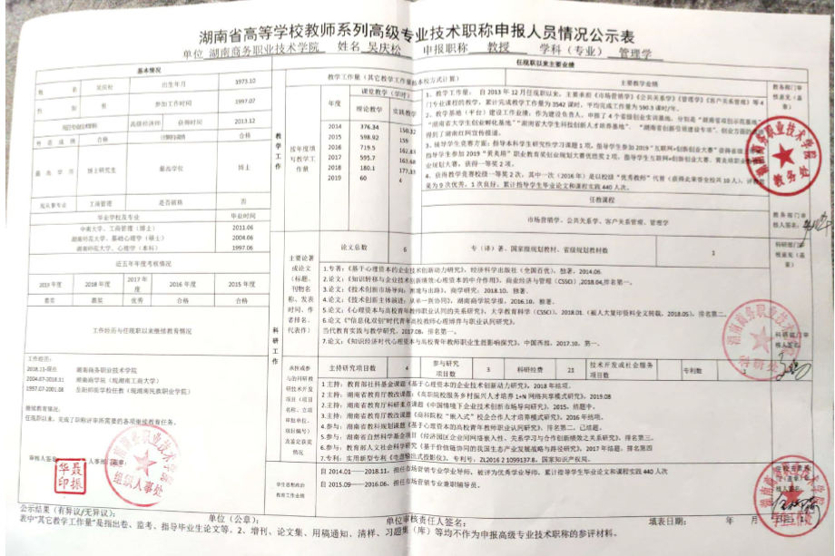 根据《湖南商务职业技术学院2019年高等学校教师系列专业技术职称(职务)评审工作方案》精神,学院高教系列专业技术职称评审教学测评委员会、科研测评委员会和综合测评委员会赋分,现将申报高教系列专业技术职称校内测评结果及各参评人员公示表予以公示(详见附件)。